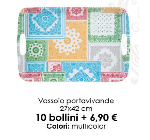 - Vassoio portavivande (misure 27×42 cm) in multicolor, con 10 bollini + 6,90 € di contributo;