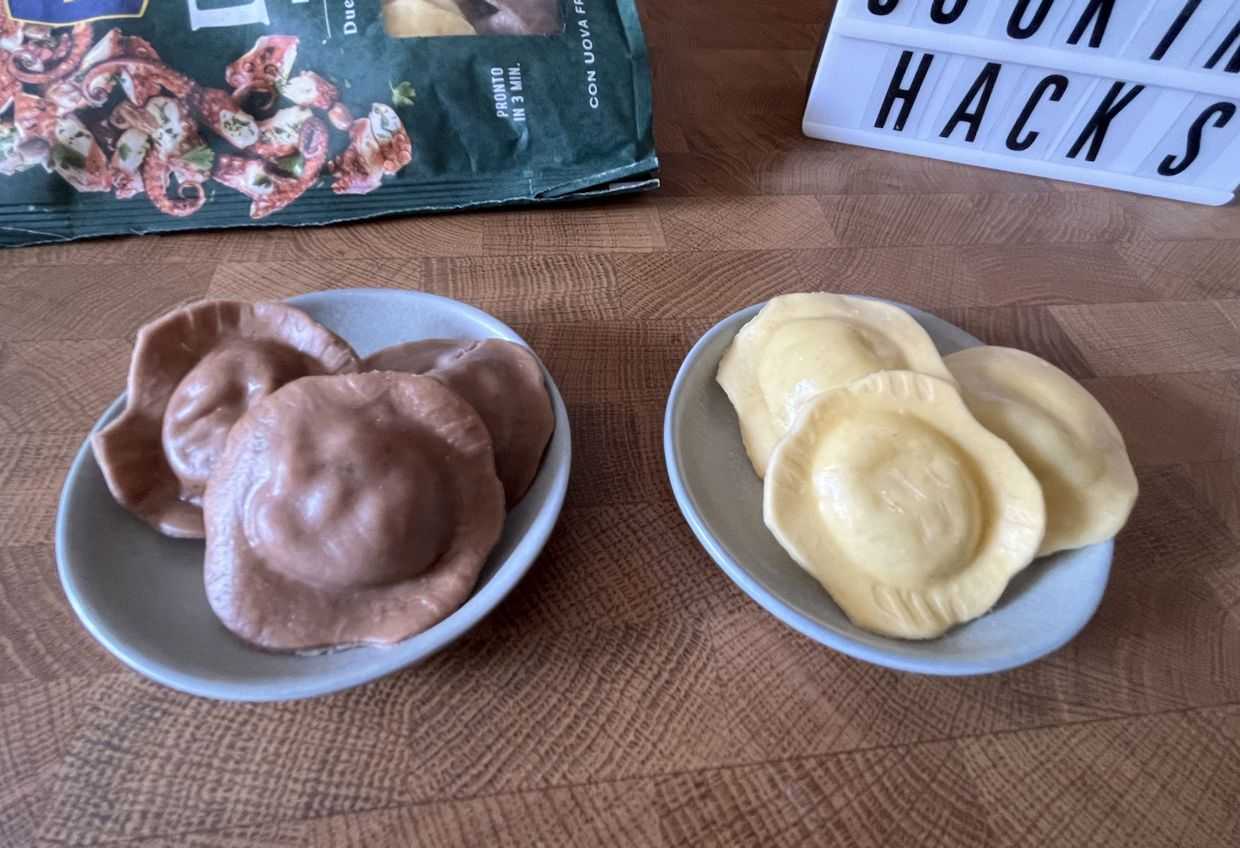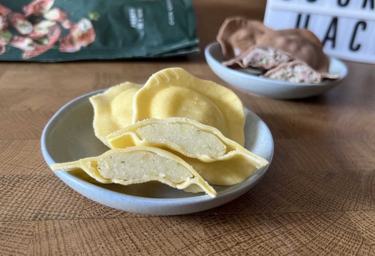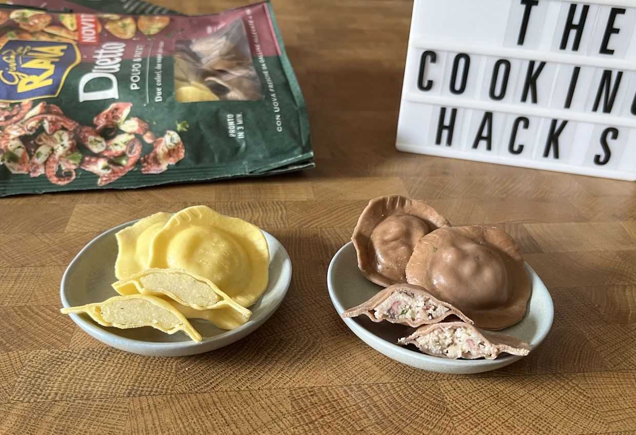 La pasta fresca ripiena Duetto Polpo e Patate di Giovanni Rana ci ha incuriosito sin dal momento in cui l’abbiamo notata nel supermercato: i ravioli alle patate fanno parte della tradizione italiana, ma i ravioli al pesce hanno la loro complessità nella realizzazione.